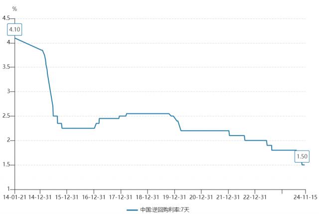 延长时间周期看,10 每年,我们的“ 7 “天期逆回购”利率已经从 4.1% 跌至 1.5%,将来再次跌破 1%。