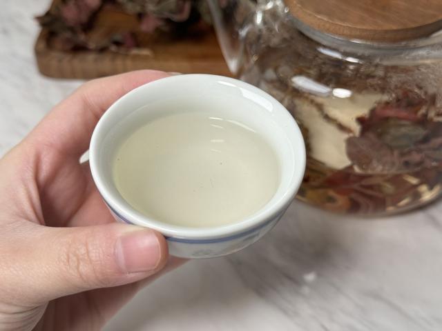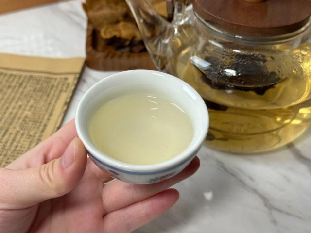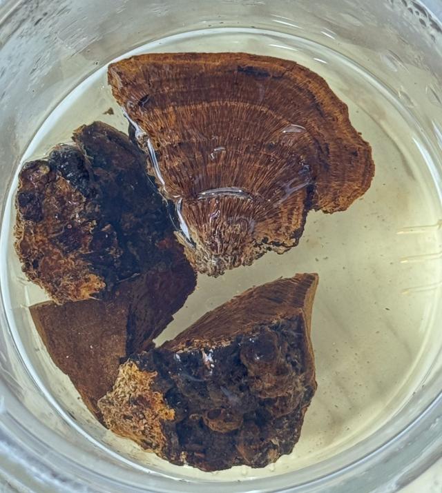 浸泡在水中后,汤色明黄,带有淡淡的木香和菌香。