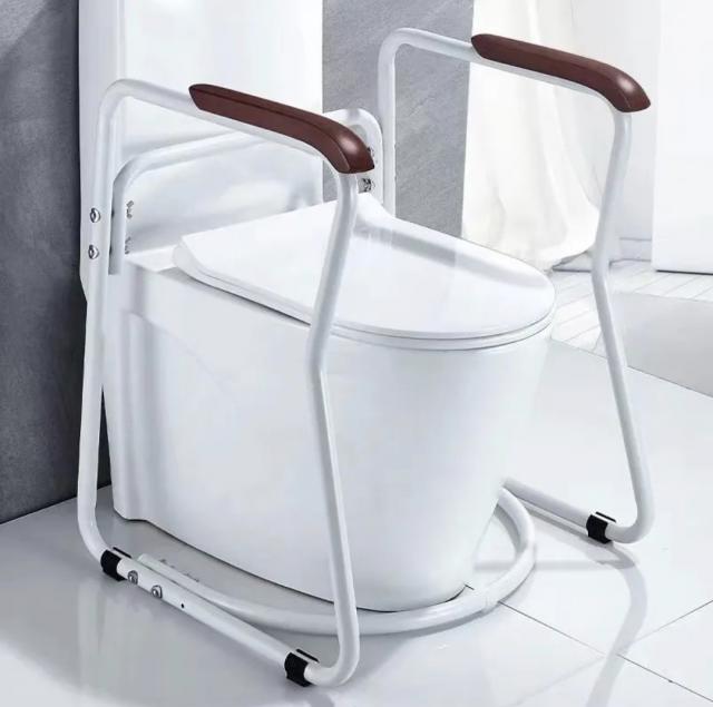 有的马桶靠近窗户,不方便安装墙扶手,还可以采用另一种方法。