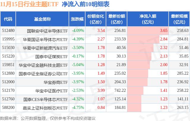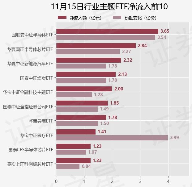 当天有 152 只行业主题 ETF 资金净流入显示,其中国联安中证半导体净流入排名第一。 ETF(512480),份额增加 3.54 十亿份,净流入额为 3.65 亿元。