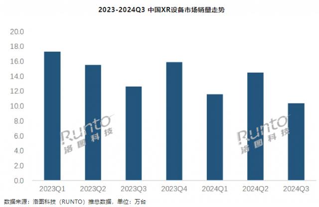 IT 世家 11 月 18 据洛图科技最新发布的《中国》报道 XR 根据设备零售市场的月度跟踪报告,2024 年度第三季度,中国消费级 XR 设备(包含 AR 和 VR)的全渠道零售销售为 10.3 万台,同比减少 17.9%;销售额为 3.5 同比减少1亿元 9.2%。