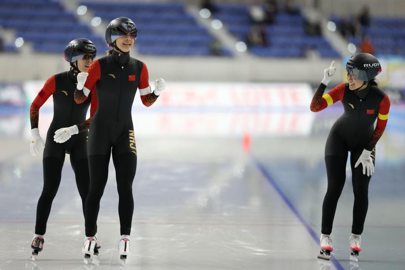 中国队由杨滨瑜、阿合娜尔和金文靓组成,与北京冬奥会第二组冠军加拿大队同时出发。比赛进入第二圈,加拿大队选手从跑道上摔下来,提前退出奖牌。中国队的三个女孩打得稳定,花了3分02秒20分,以1.82秒以上的第二名日本队获得了这个项目的冠军。这也是中国速度滑冰队本赛季获得的第一枚金牌。