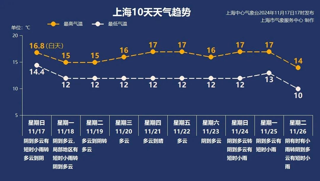 从星期二开始,将有3~4天的晴天或阴天。虽然阳光在线,但升温实力已经降低,最高温度基本在17℃以内。城市地区早晚最低温度保持在12℃左右,郊区可能降至10℃以下。深秋的气息已经很浓了,大家要合理穿衣,谨防感冒。