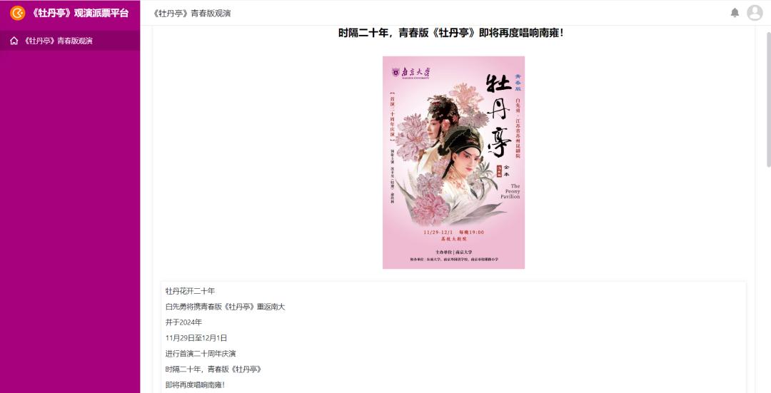 沉重的福利!青春版《牡丹亭》校内抽票系统开放