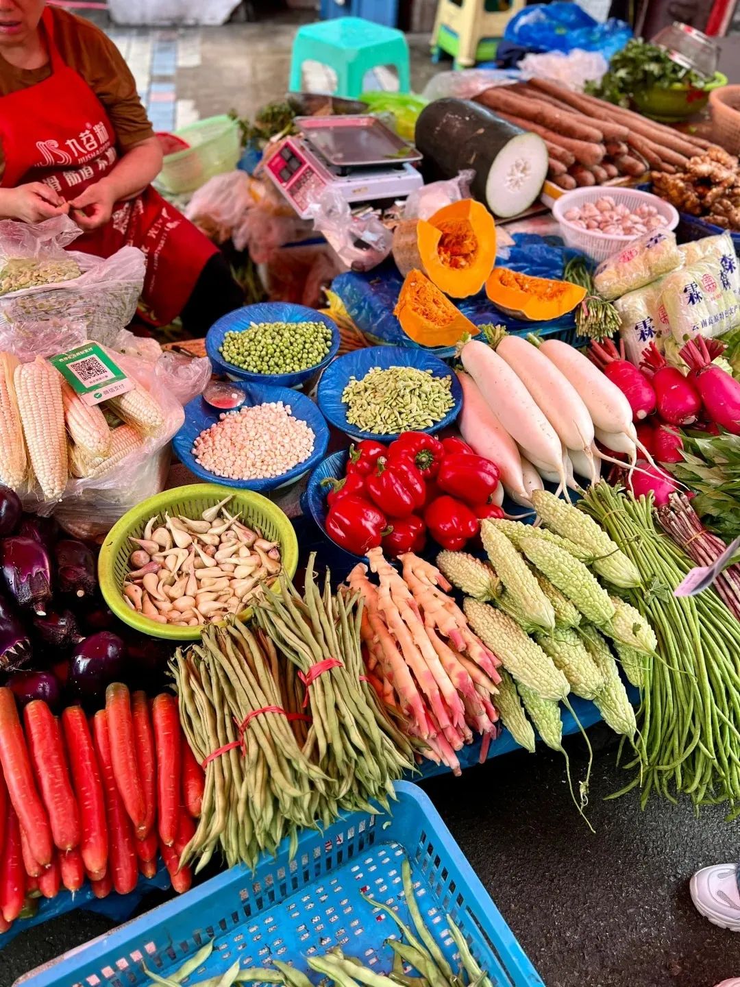 肉是切好的,蔬菜是去皮的,玉米是去皮的,小米椒可以根本卖...在北方菜市场招人打,但在南方菜市场已经习惯了。