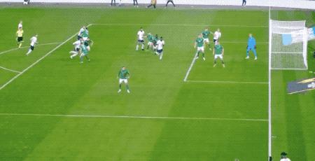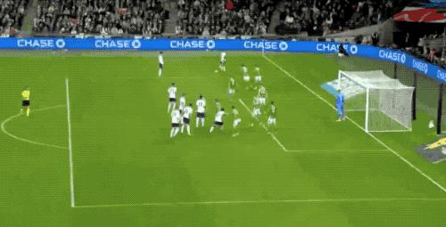 第 75 一分钟,英格兰前场任意球打出合作,爱尔兰的关键位置一片开阔,刚刚登场的鲍文第一次触球,就完成了破门。