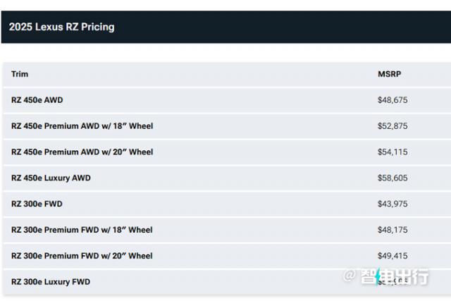 现在的雷克萨斯 2025 款 RZ 该车型已在海外市场上市销售,新车市场起售价格为 43,975 美金(约为 32 万人民币),比 2024 汽车价格下降了 11,200 美金(约为 8.2 与万人民币相比 2024 款丰田 bZ4X 价格较低(总费用) 44,465 美金≈ 33 万元)。