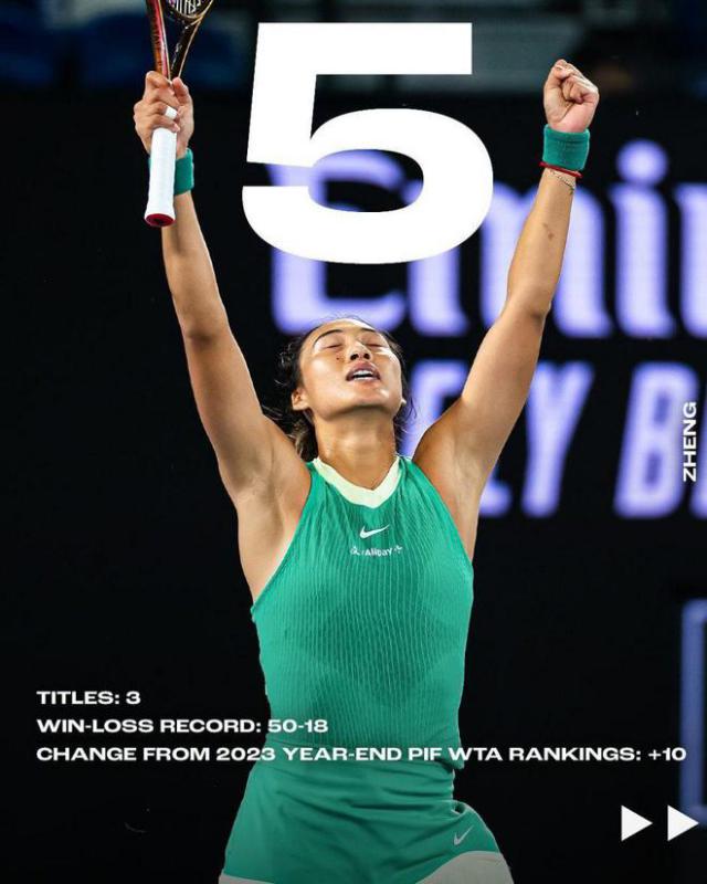 今年郑钦文取得了突出成绩,6 第二次进入决赛,3 第一次夺冠,可惜第一次进入大满贯决赛,却最终排在澳网亚军。