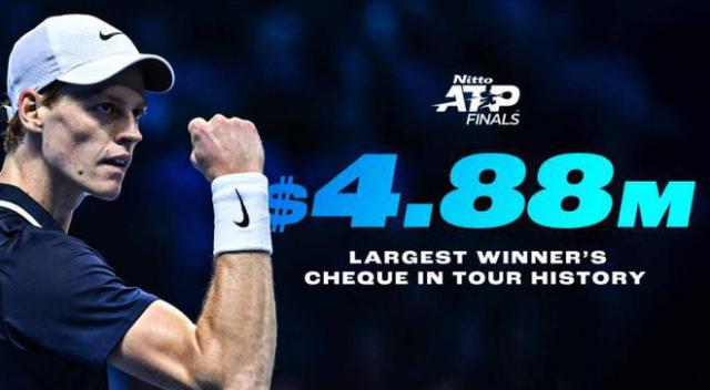 这是年终总决赛 5 在这场比赛中,辛纳一盘未失继续取胜,5盘未失。 辛纳在场比赛中的总收入高达 488.11 一万美元的奖金。这个奖金金额让辛纳超过了上周。 WTA 高芙总决赛夺冠(480.5 一万美元),创造了单项正式比赛的奖金记录。