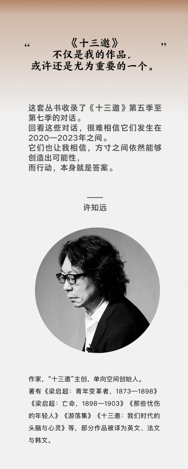 这套书包含了《十三邀》第五季到第七季的对话。很难相信这些对话会发生在回放时。 2020 到 2023 年份之间。他们还让我相信,方寸之地仍然可以创造概率,而行动,原本就是答案。
