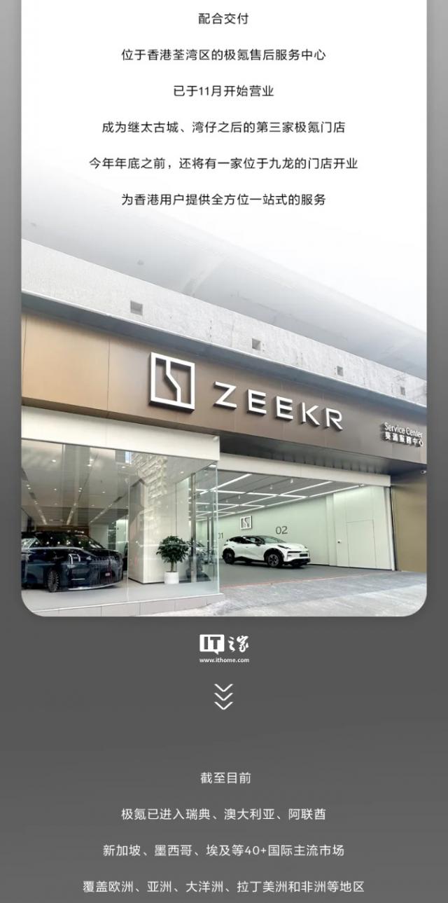 据报道,极氪售后服务中心位于香港荃湾区。于 11 月开始营业,成为继太古城、湾仔之后的第三家极氪店,今年年底前还有一家九龙店开张。