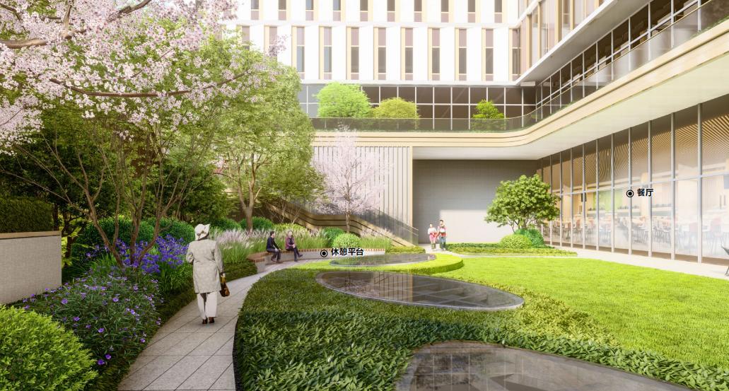 与黄浦江两岸相比,建筑质量建设国际创新城市。这个项目的建筑设计方案形象简洁大气,身材挺拔,有雕塑感。立面采用铝板与陶瓷幕墙相结合的方式,形成了错落有致的立面设计。在交通流线设计中,充分考虑多渠道医疗路线,预留地下连接通道,实现与轨道交通的无缝连接,地下三层车库和非机动车停车库满足医疗停车需求。景观设计以桃溪绿谷为意,打造绿树成荫、移步换景的花园治愈医院。
