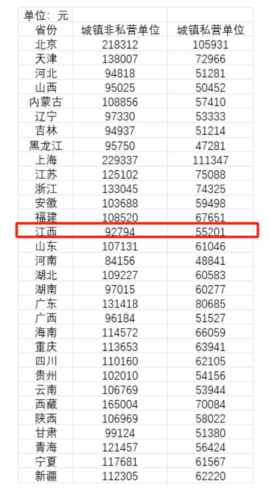 公布江西平均收入!