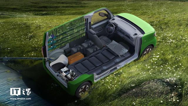 据 IT 据世家报道,这辆新车也可以用作露营车。它的副驾驶座椅可以完全放下,可以和床垫一起转换成舒适的休息空间。车内剩余空间可用于存放露营所需的户外设备,车顶可安装额外的行李架存放更大的物品,大大拓展了车主的户外活动场景。