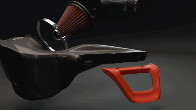 它的碳纤维进气口可以阻挡发动机舱内的热空气,将冷空气引向滤芯。
