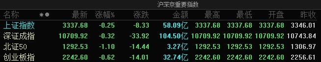 a股指数集体开盘下跌:上证指数下跌0.25%,证券、保险、钢铁等方向跌幅居前