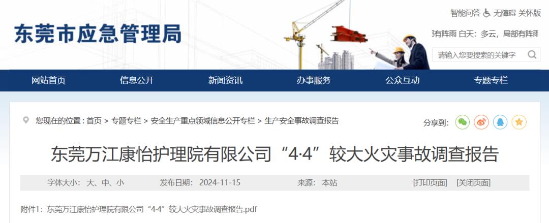 报告显示:2024 2008年4月4日4时12分,广东省东莞市康怡护理院发生火灾,发生火灾2平方米,造成4死9伤,损失251.1316。 万元。