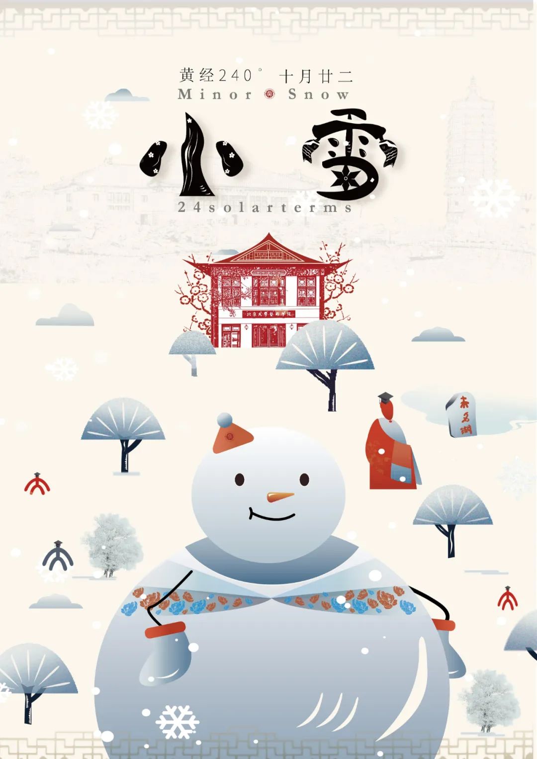 赏雪、吟雪、围炉煮茶,总能唤起人最温柔的情绪。北京大学艺术学院创意设计与艺术管理系师生制作了以“小雪”为主题的海报,运用节令元素,结合传统文化和现代设计风格,传达出浓郁的雪景魅力。