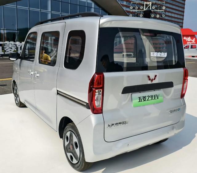 五菱之光 EV 车尾几乎垂直于车顶。大角度开闭的尾门升起后,可以作为天花板使用,方便车内装卸物品。但是这款新车的后挡风玻璃没有配备后雨刷。