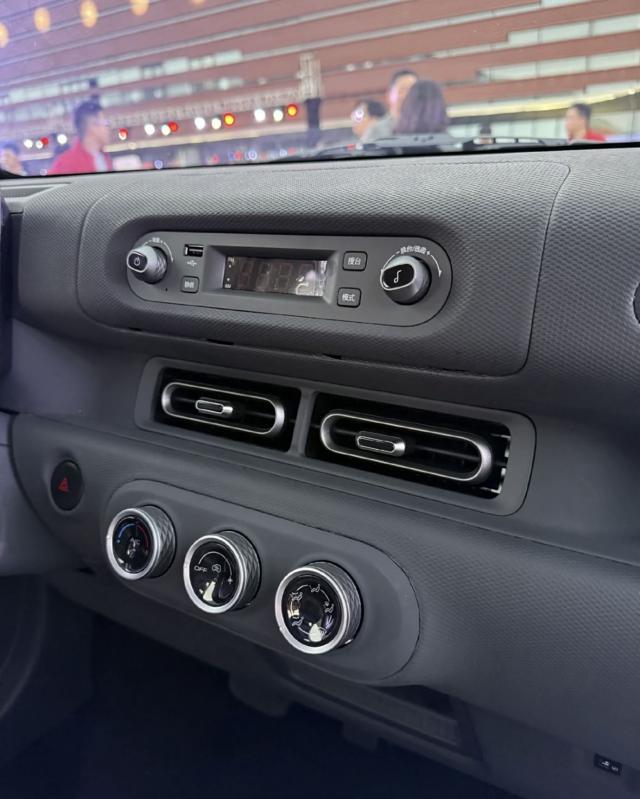 五菱之光进入车内 EV 布局设计简单简洁,方向盘无功能按钮。前面有一个液晶仪表盘,中控台中间有一个简单的收音机,空调是一个手动旋钮开关。