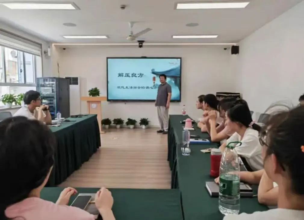 叶阳邈强调,只有实现身心和谐统一,才能真正抵抗压力的入侵。同时,他还引导教职员工尝试用“专注”和“等待”两种方法将调心方法付诸行动。大家在专注的过程中,仿佛进入了一个宁静的世界,外界的喧嚣和纷扰逐渐消失。一位年轻的老师说:“当我专注于自己的呼吸时,我觉得整个人都平静了下来,那些烦恼和压力暂时被抛在脑后。”