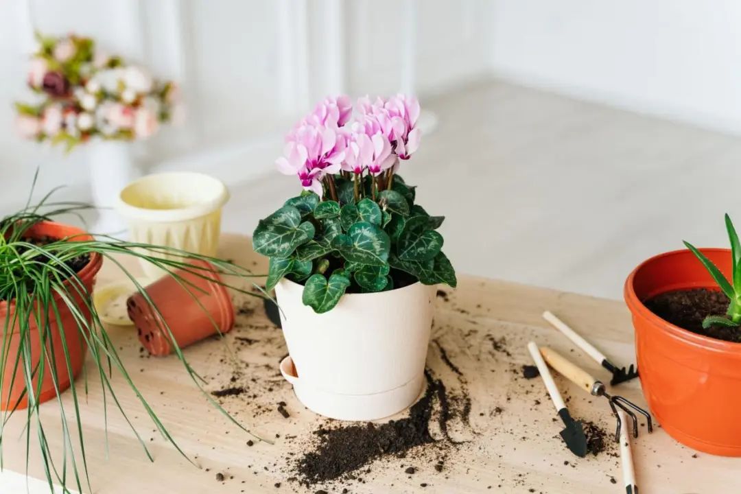 很多人在仙客来买了之后会给它换一个新盆。其实不用担心,仙客来换盆的最佳时间是休眠期,花期尽量不要移动根系,以免影响花蕾的发育。如果原来的盆不是很漂亮,可以在外面放一个花盆。