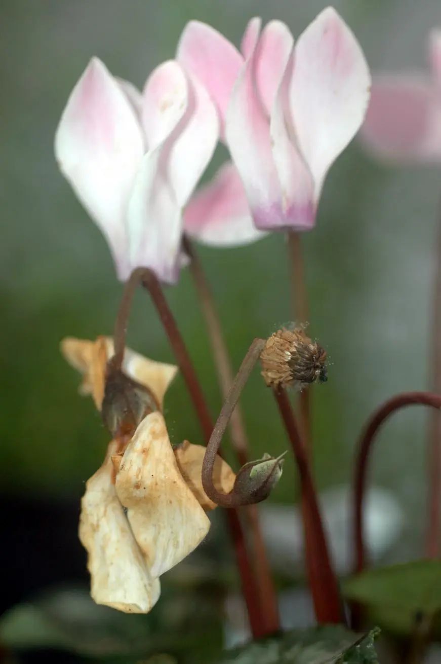 对仙客残花进行及时修剪,可以使植物保持美观,也可以避免养分的分散和浪费。修剪时,从花柄根部修剪。