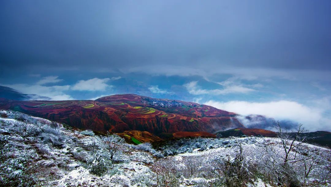 原题:“雪意初显 红色的土壤如画|有一种叫做云南人生365天。
