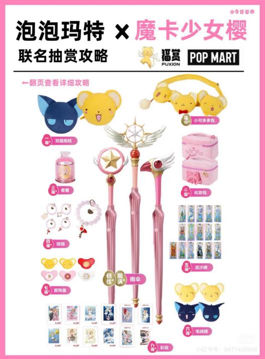 以经典动画《魔卡少女樱》和周边商品平台泡泡玛特联合打造的25周年周边系列为例,包括枕头、香薰、化妆包、挂链、珠宝盘、雨伞、铭牌等产品类型。这些产品大多具有一定的日用品特性,具有一定的实用价值,能够满足消费者对二次元的喜爱,因此很容易受到年轻消费者的青睐。
