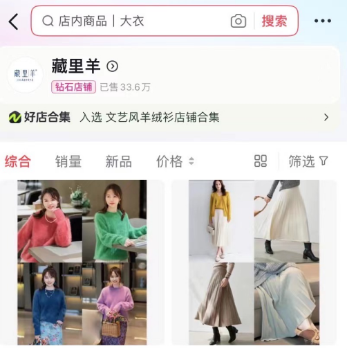 直播间制造爆款后,“藏里羊”会把这些爆款放在店里。通常在内容领域经历过市场考验的产品,在商城爆款的可能性很大,可以降低商家的试错成本和工厂的备货风险。