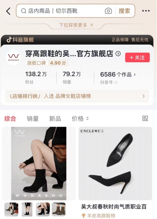 同样,“高跟鞋吴大叔”女鞋品牌经理吴楠也发现,在抖音电商上“内容” “货架”的方法能取得很好的商业效果。