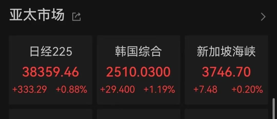 在外部地区,日本、韩国的重要股指大幅上涨。