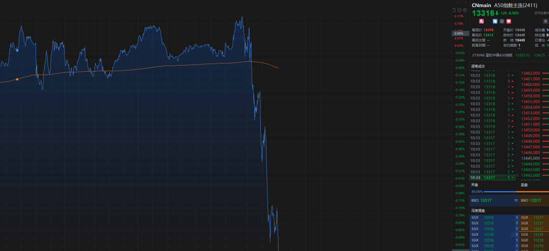 A50指数期货呈现直线暴跌趋势。
