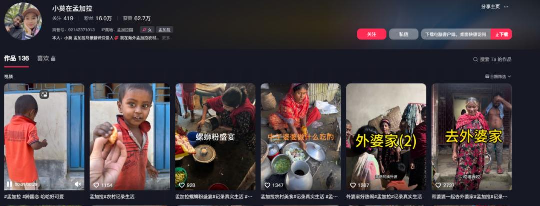 不仅在中国,在国外也有一批“苦瓜大队”。比如@小莫在孟加拉被网友认为可以PK打败小英的博主,家庭条件差,用手吃饭,让网友不理解他从中国远嫁到孟加拉。