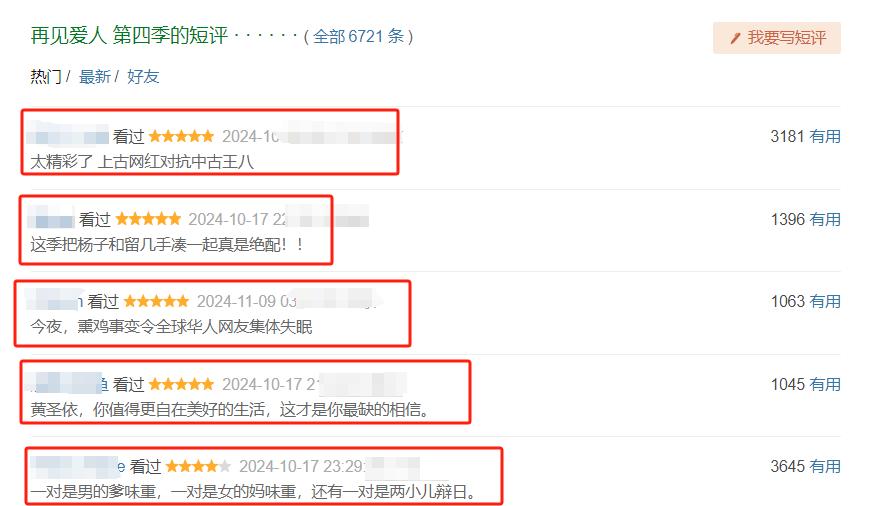 第一,数据上对这个节目全方位出圈的认同非常直观:《再见爱人4》在芒果TV的累计播放量已超过8亿,更新日播放量在4000万至5000万之间。另外,该节目的人气值在2024年10月飙升至31841,显示出极高的观众关注度u200c。