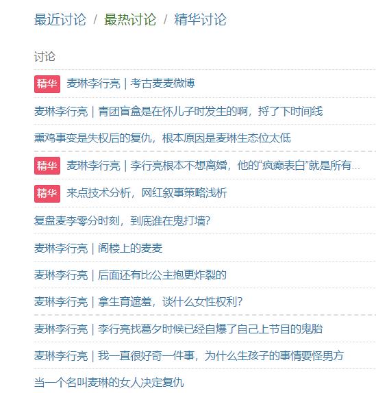 再看看豆瓣小组《再见爱人》,超过7万网友参与讨论,最热门的十大讨论都集中在李行亮和麦琳之间。当人们为别人的婚姻提供建议时,他们往往像扬子一样清醒。这真的是一个有趣的现象,很多讨论者恐怕连恋人都没有。