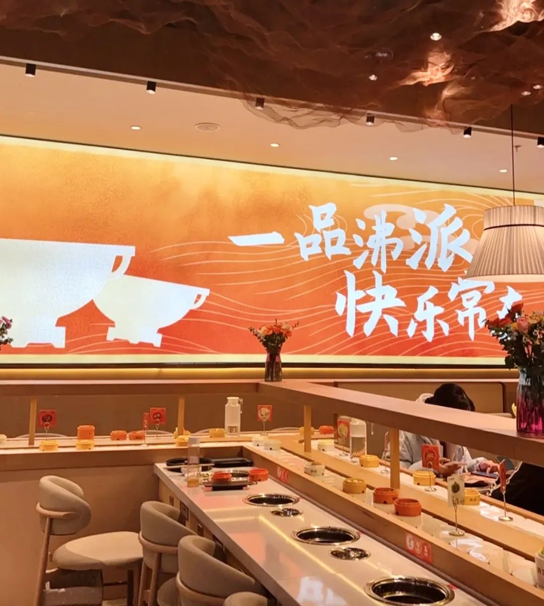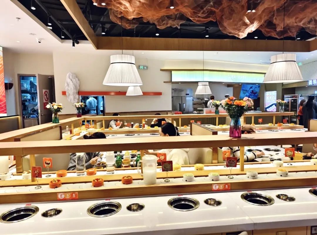 该品牌推出了数百种菜肴,其特点是旋转自助式一人食小火锅,号称“人均只需30。 "。根据公众评论,目前人均消费在42元。