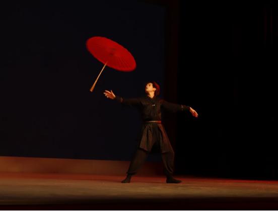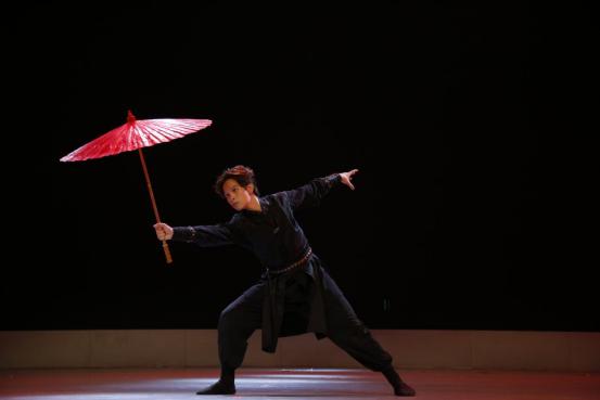 然后在《侠骨伞影》中,舞者在光影交错中以伞为剑,每一步似乎都在变化。刚柔相济的动作让一个洒脱的侠客跃上舞台,这是一种独特的魅力,让观众沉浸其中。