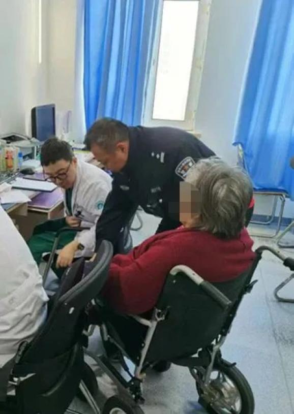 小刘接到消息后立即赶到老人家中,与小区物业工作人员一起将老人从家中扶到警车上,送到医院进行治疗。