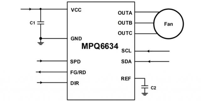MPQ6634 选用 PWM(pulse width modulation)或者模拟电压输入调节电机转速,可以选择开环速度控制或闭环速度控制。与此同时 MPQ6634 支持电动机的正转和翻转运行。