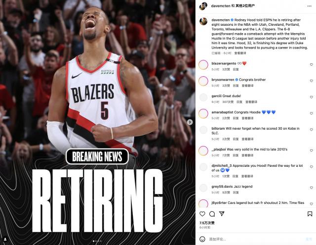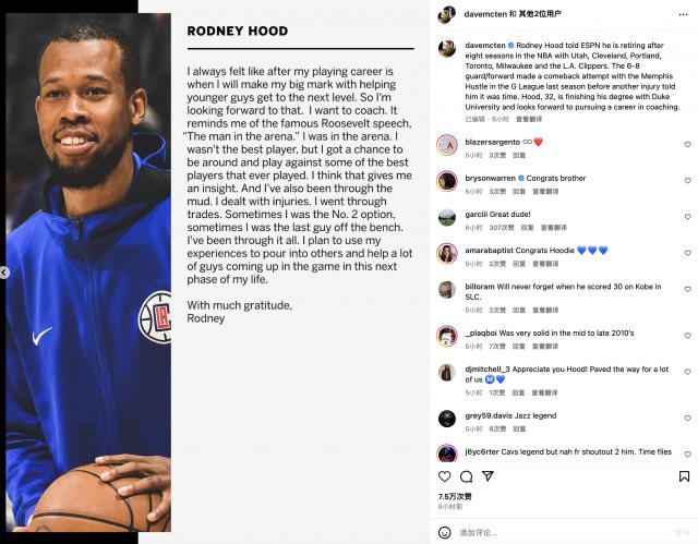 不久前,罗德尼 - 胡德正式宣布退役。提到胡德这个名字,大概很多球迷都不记得了吧?归根结底,胡德上一次出战 NBA,已追溯到 2022 年过去了。而且他也只是 2014 年度新秀,第一轮末顺位, NBA 八年,也算是基本完成任务了。