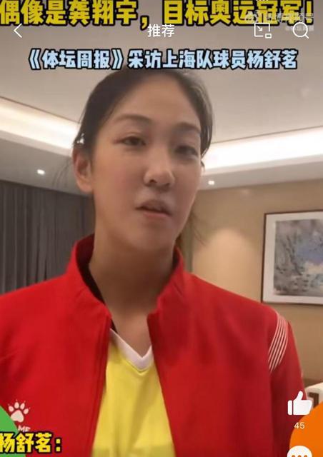 杨舒茗采访:偶像龚翔宇,目标奥运冠军!在未来,她将成为女排的主力球员。