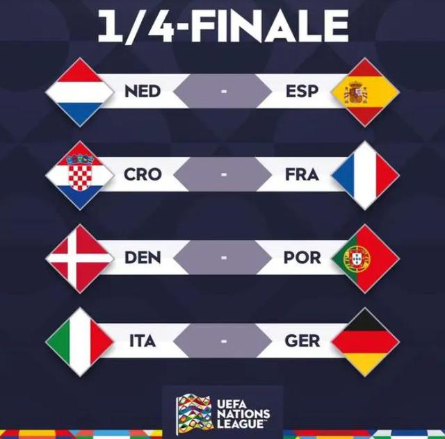 北京时间 11 月 22 日晚,2024 年度欧国联淘汰赛抽签结果正式发布;淘汰赛从 8 意大利和德国开始进行强强对抗,而葡萄牙则选择丹麦,这是一个很好的签名。下半部分将上演。 2 荷兰和西班牙、克罗地亚和法国是世界杯决赛的重演。