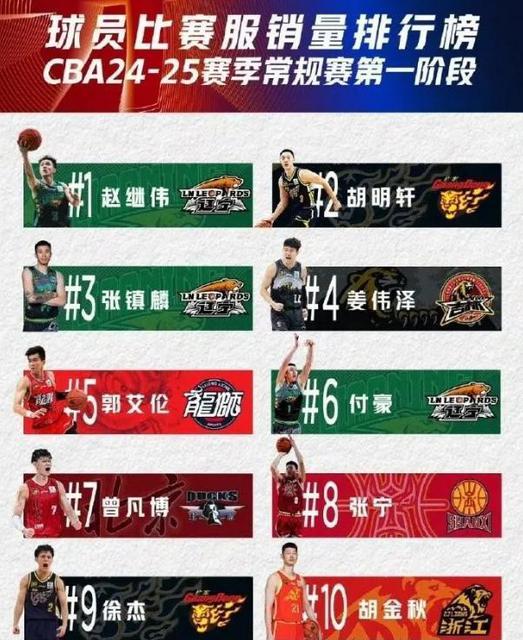 CBA 第一阶段各队球衣销售情况正式公布,其中辽宁男篮球衣销量最高,其次是广东男篮。这两支球队都有非常庞大的球迷基础,球衣销量相对较大也是合理的。吉林男篮排名第三,这有点出乎意料。由此也可以看出,吉林球迷仍然非常支持球队。赵继伟的球衣在个人球衣销售排名中销量最高,其次是广东男篮的胡明轩,排名第三的是张镇麟。这三名球员都是辽粤明星球员,被球迷支持也就不足为奇了。在离开辽宁男篮之后,郭艾伦的球衣销量排名第五,他的球衣销量肯定受到了很大的影响。其他球员方面,曾凡博在北京男篮的球衣销量排名第七,张宁在山西男篮排名第八,徐杰在广东男篮排名第九,胡金秋在广厦男篮排名第十。