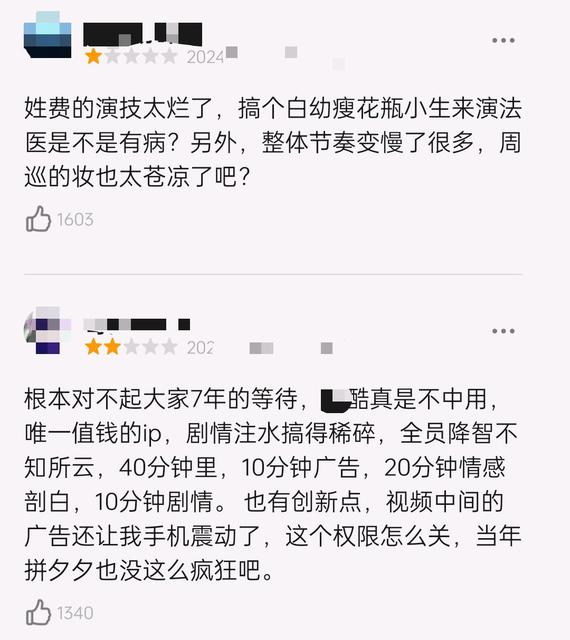 另外,这部剧之所以被吐槽,是因为“法医”这个角色取代了深受观众喜爱的女法医高亚楠。虽然是因为“产假”,她不得不加入一个新的角色,但是这个演员的演技真的很差,所以她不忍心直视法医队的线。
