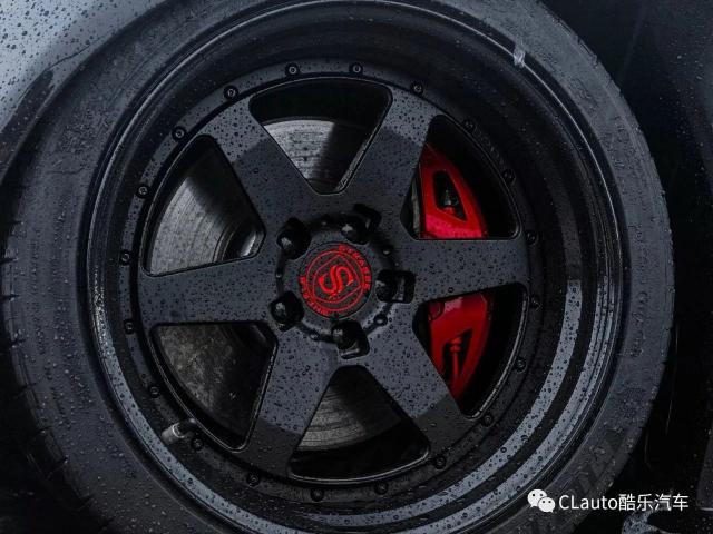 这个轮毂叫做 S6 Competition Series,中心部分采用哑光黑色,外抛和螺丝采用亮黑色。前轮胎的宽度是 19 × 10J,后胎为 19 × 红色制动卡钳安装在12J。
