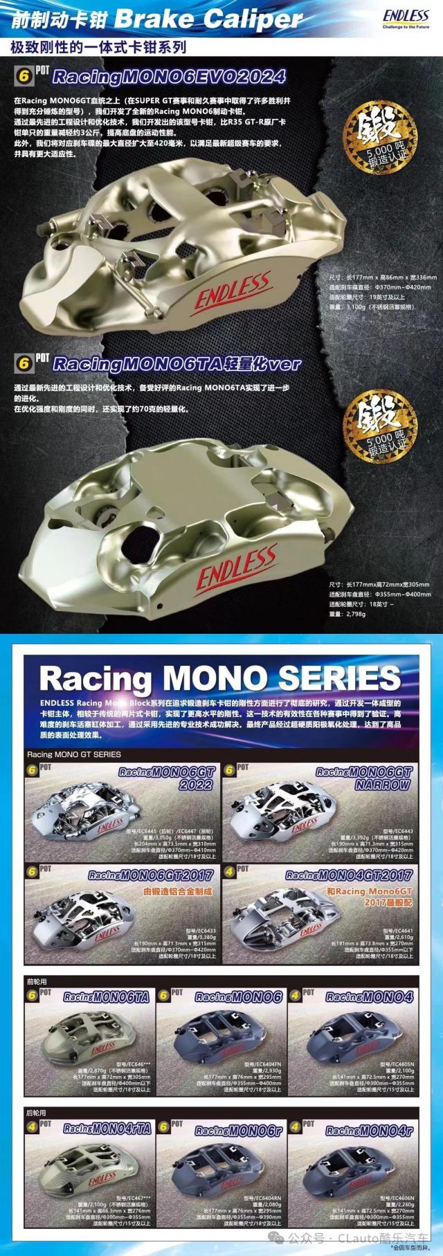 特别是 ENDLESS 独创的 E 字碟,不但制动效果更好,而且还可以提醒刹车盘何时更换。