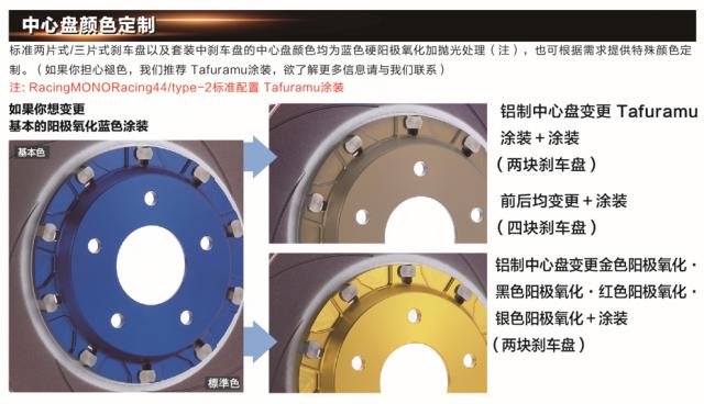 不但如此,如果选择分离式制动盘,除了选择合适的制动盘外,还可以定制合头的颜色。