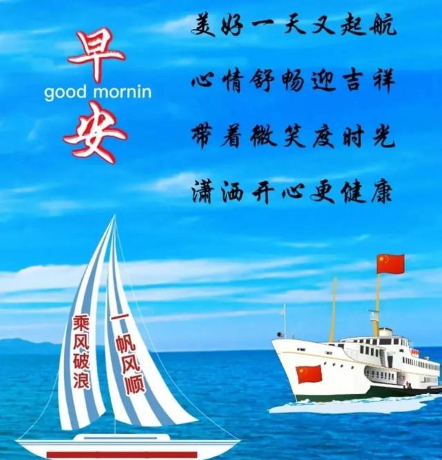 早上好,一天开心,万事不拖;天天开心,苦恼无痕;心满意足,岁月长存;健康快乐,福祉永远存在。真情相伴,风雨同行,问候传递,幸福波澜;友谊长存,联系永远不会忘记,健康快乐,生活平安。早上好!