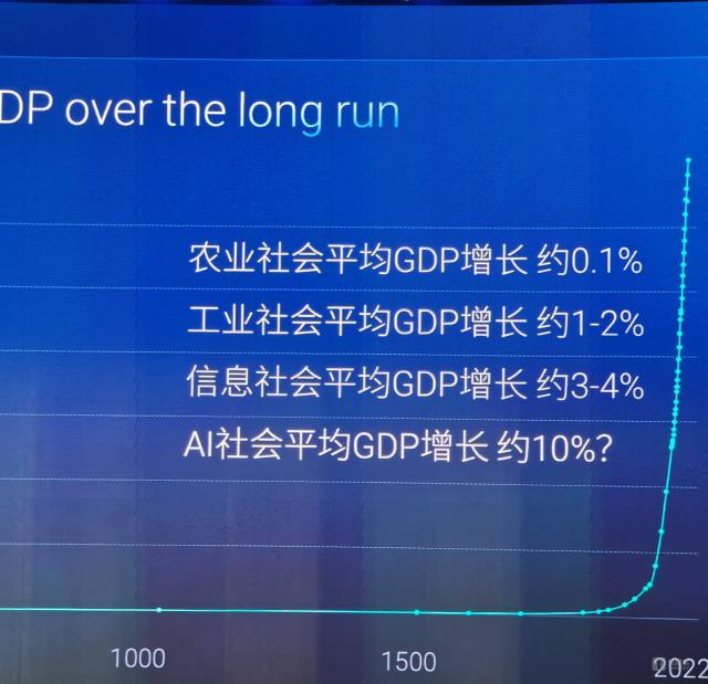 就社会发展而言,我们习惯于使用它。 GDP 去衡量发展水平。但 GDP 事实上,这个概念非常新。以前,农业社会根本不存在。 GDP 成长的概念,因为人们甚至很难解决温饱问题。随着农业社会的发展,每个人都有剩余的产能, GDP 平均年增长仍然只有 0.1% 至 0.2%。在工业社会,这一数字已经增加到工业社会。 1% 至 2%。信息社会的 GDP 平均年增长已经达到 3%、这里所说的4%都是全球大概数字。